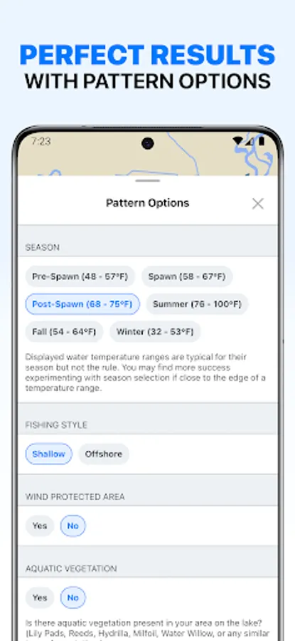 Unlike many other fishing apps, Deep Dive does not rely on other anglers reporting what is working or where they are catching fish. The Deep Dive engine sorts through over a million possible input combinations to give you a proven pattern that has caught bass, but only when the lake and weather conditions are right for that specific pattern.