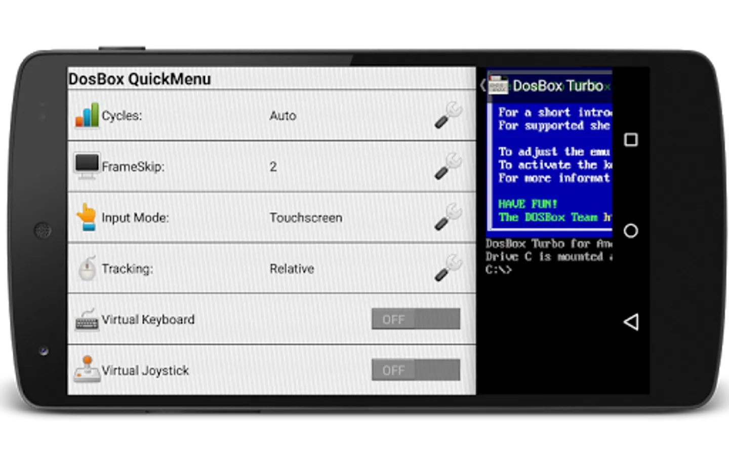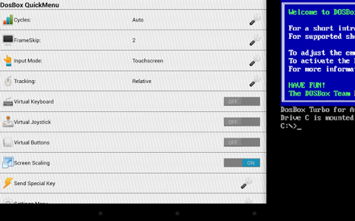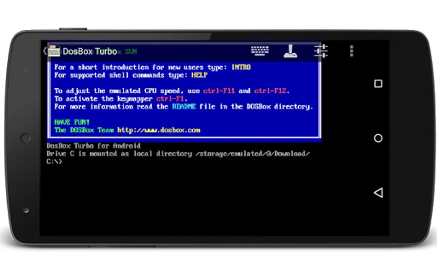 NOTE: Your device should have at least 50+MB of storage space and at least 256MB RAM to run DosBox. Copy your old DOS games onto your device or SD card and start playing!