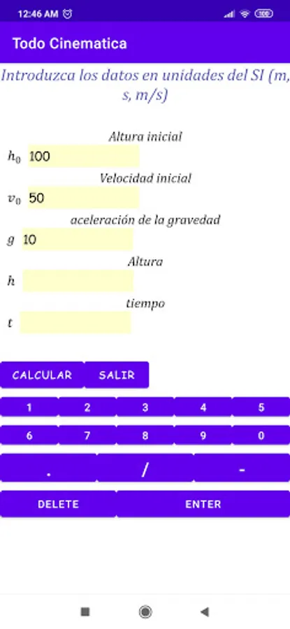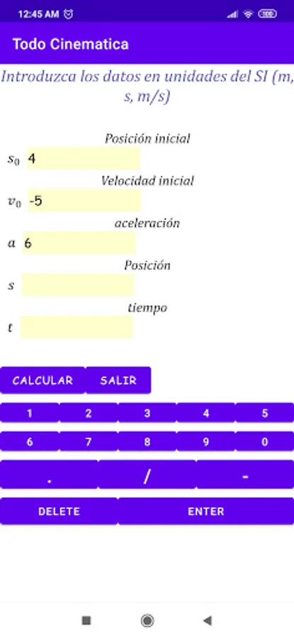 By entering the initial position, the velocity and the acceleration can be obtained;