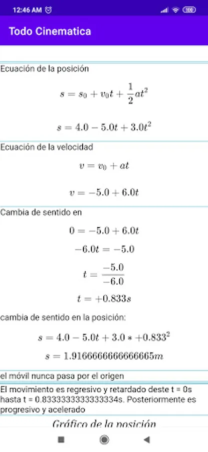 - Find out if the mobile passes through the origin and at what moment, if it changes direction.