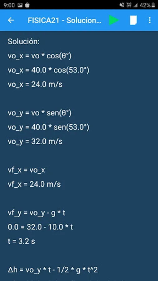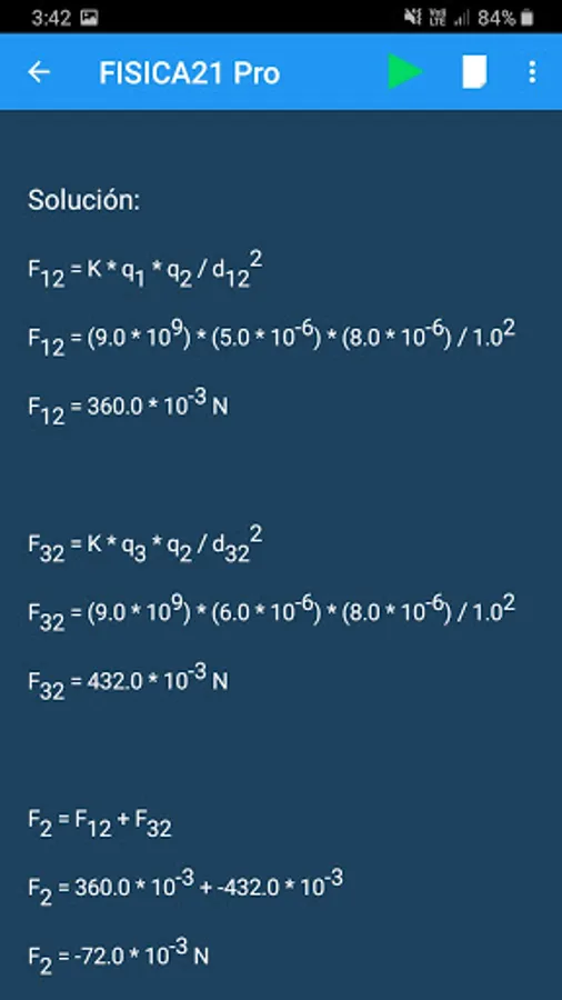 Calculadora de Física que muestra la solución del problema paso a paso.