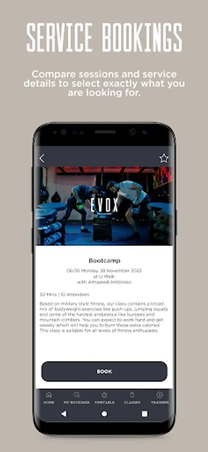 The EVOX APP allows members to manager their membership profile, book group classes, book Personal Training, send club feedback.