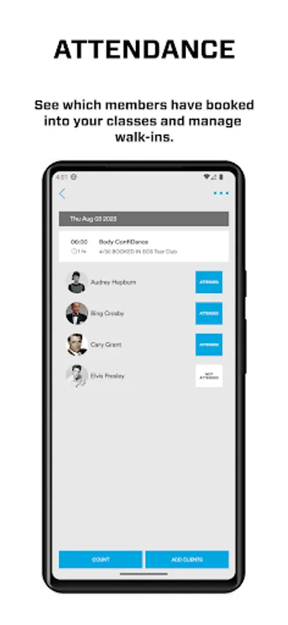 The EōS Instructor application is for EōS G-Fit instructors only. The application enables them to manage their class attendees, close out classes and manage class subbing.