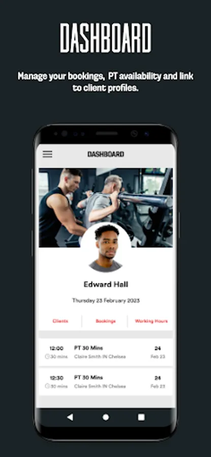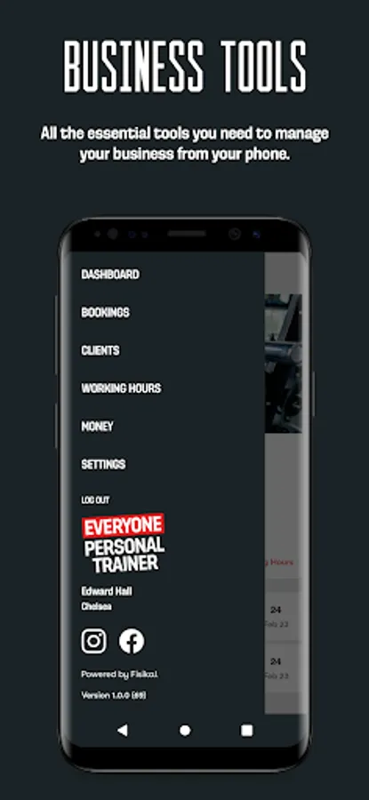 The EA trainer app enables Everyone Active trainers to manage their bookings, clients interactions and working hours. Trainers can make sure they know what bookings have been made for them, who should be attending and also who has shown up ready for their session.