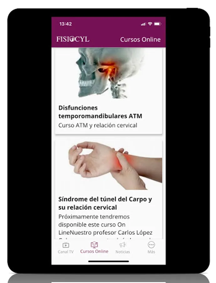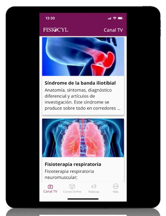 We have streaming of all the specialties within physiotherapy: manual musculoskeletal therapy, sports physiotherapy, respiratory physiotherapy, pediatric physiotherapy, neurology, pilates ...