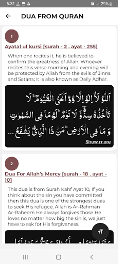 ● 2+ Translations & Tafsirs with 2+ Languages: Bengali & English.