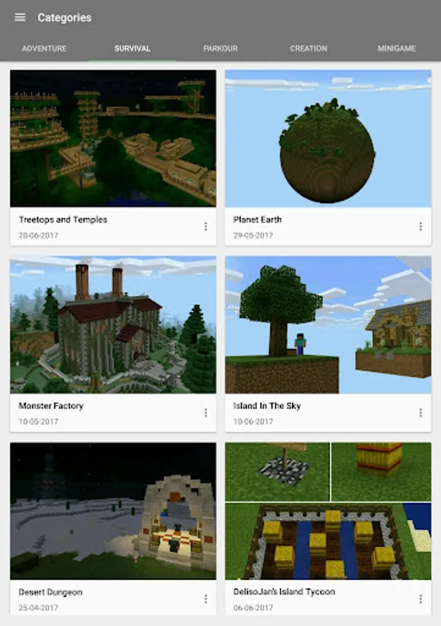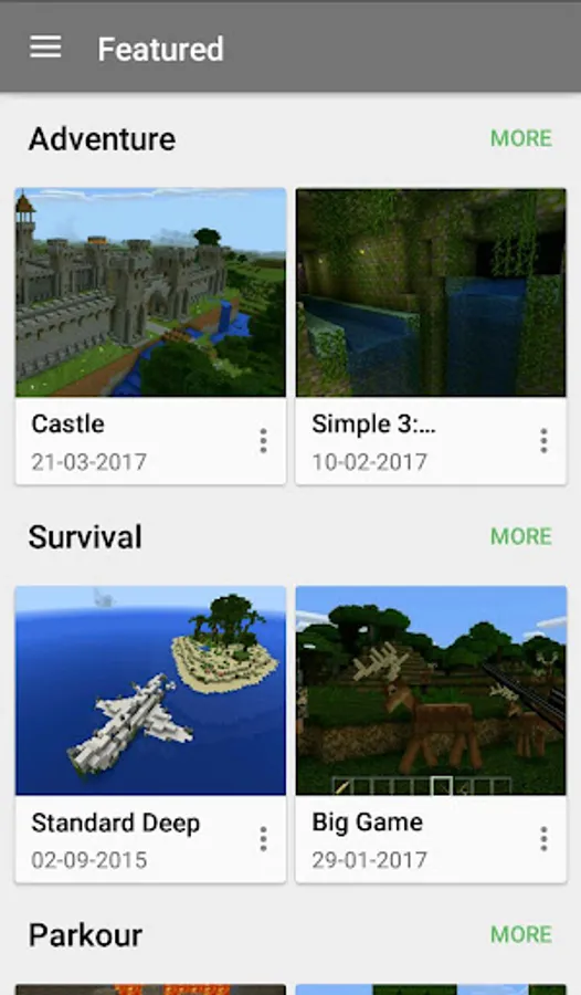 Install this app to play the most popular Minecraft PE maps. Choose a map you like and install with a single click. Everything is simple and easy.