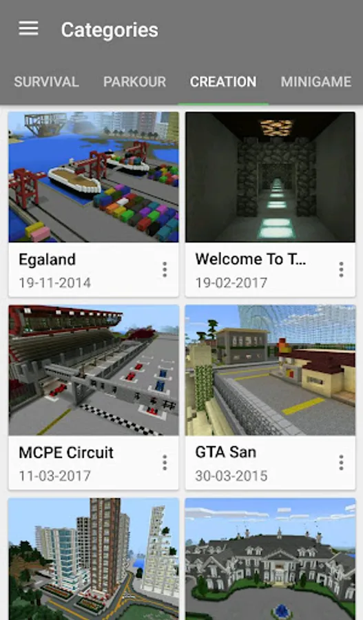 Acrait acres, Pokercraft adventures, Dark sewer, Mixed dimensions, Minecraft dungeons, Chest block, Portal alpha, Phasmophobia, Super survival, Lands of desolation, Op starter kit, Cursed island, The birdy biome, Aquablock, Mob battle, UHC clasic, Imblockable, Ice parkour, Frostcraft, Subnautica base, Ravali airship, Krusty krab, Puhon deathrun,Lucky block race, Item generator and others.