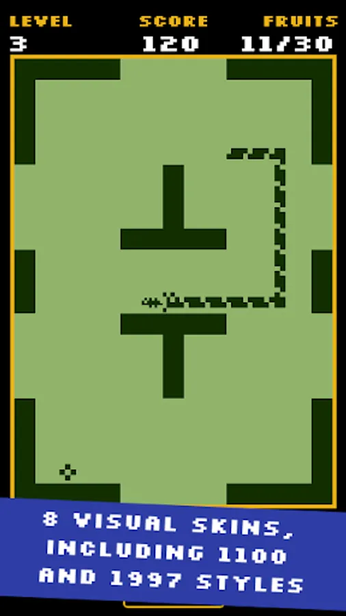 📱 Choose from 1100, 1997, Snaky Azul (with new and fun graphics), a monochrome version of Snaky, a beautiful forest skin, a classic Brick Game 9999 in 1, Retro Black (with a simple black color palette) and Retro Celeste (with a blue and yellow color palette).