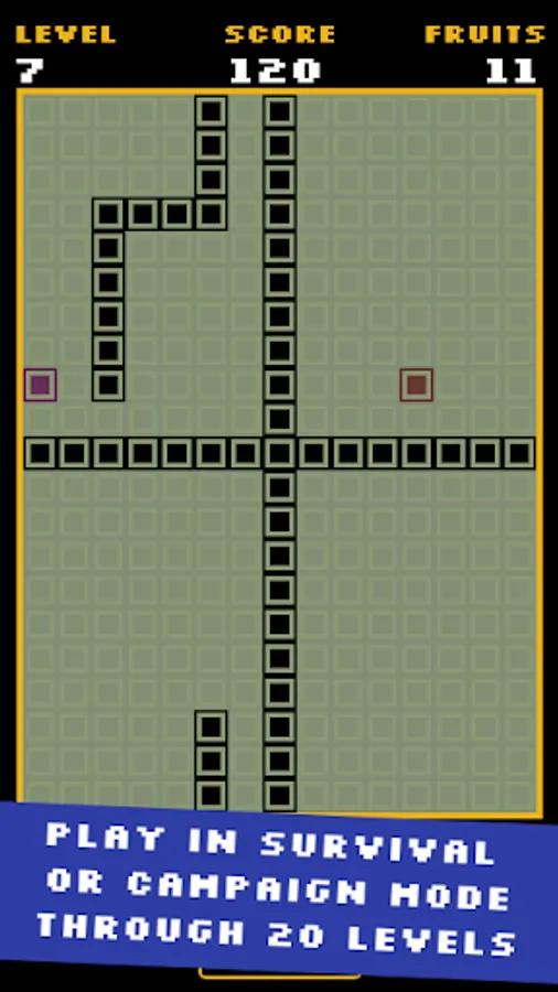 Don't settle for just one game style! Explore our options and find the one that suits you best. Plus, Snakeze has two different game modes: "Campaign" with 20 exciting levels and "Survive" as long as you can in a single level.