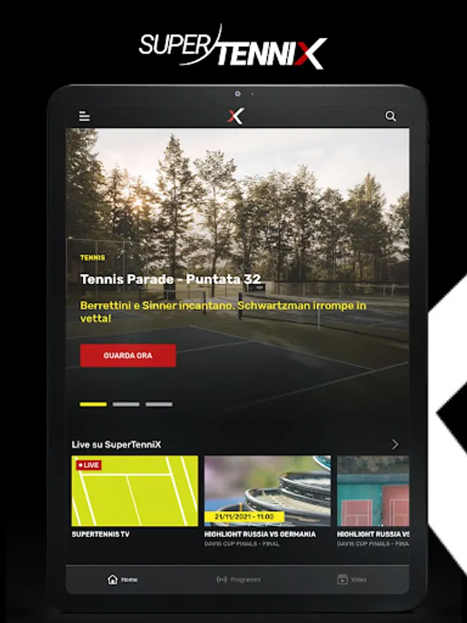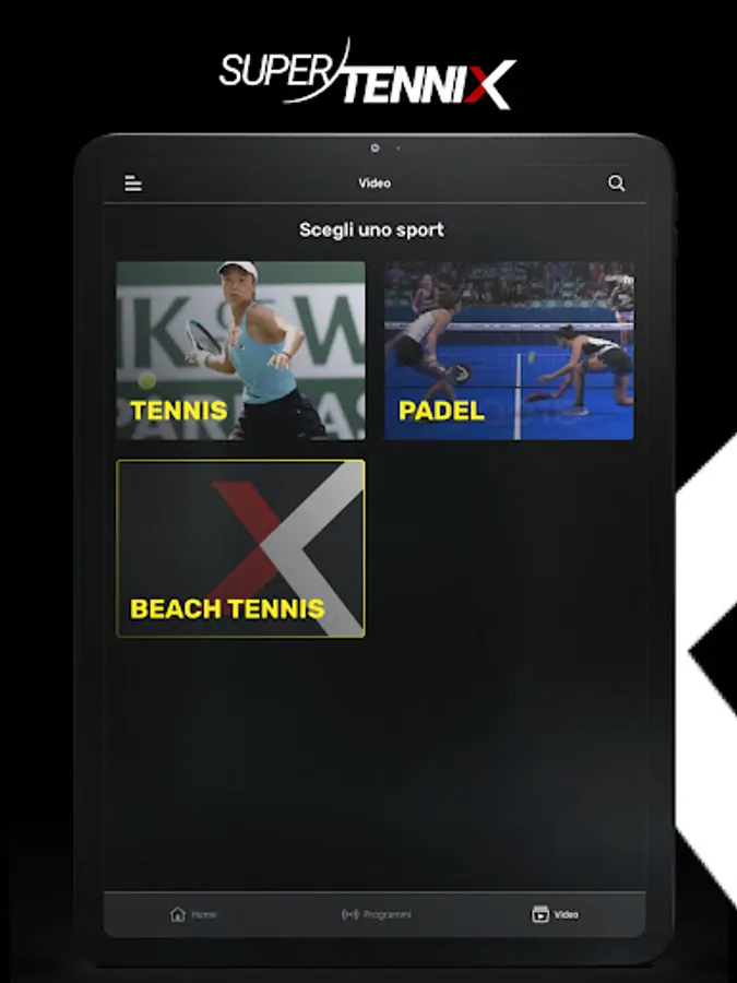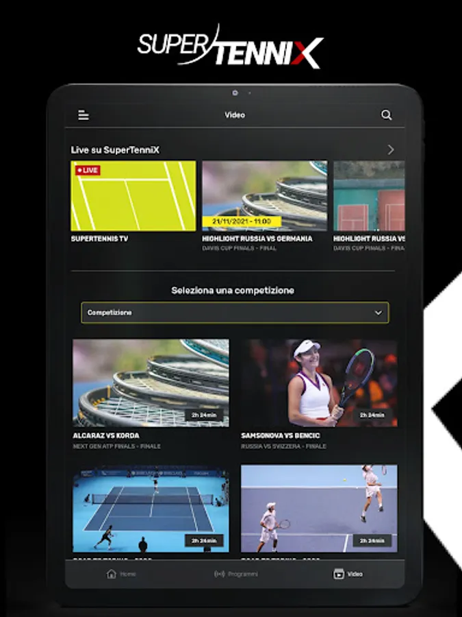 SuperTenniX is the natural digital evolution of the SuperTennis TV channel. The App offers privileged access in streaming, live and on demand, to the stage of the great tennis, padel and beach tennis. Over 100 international circuit events broadcast live every year and thousands of hours of content to see and review. Plus, extensive coverage of major federal events.