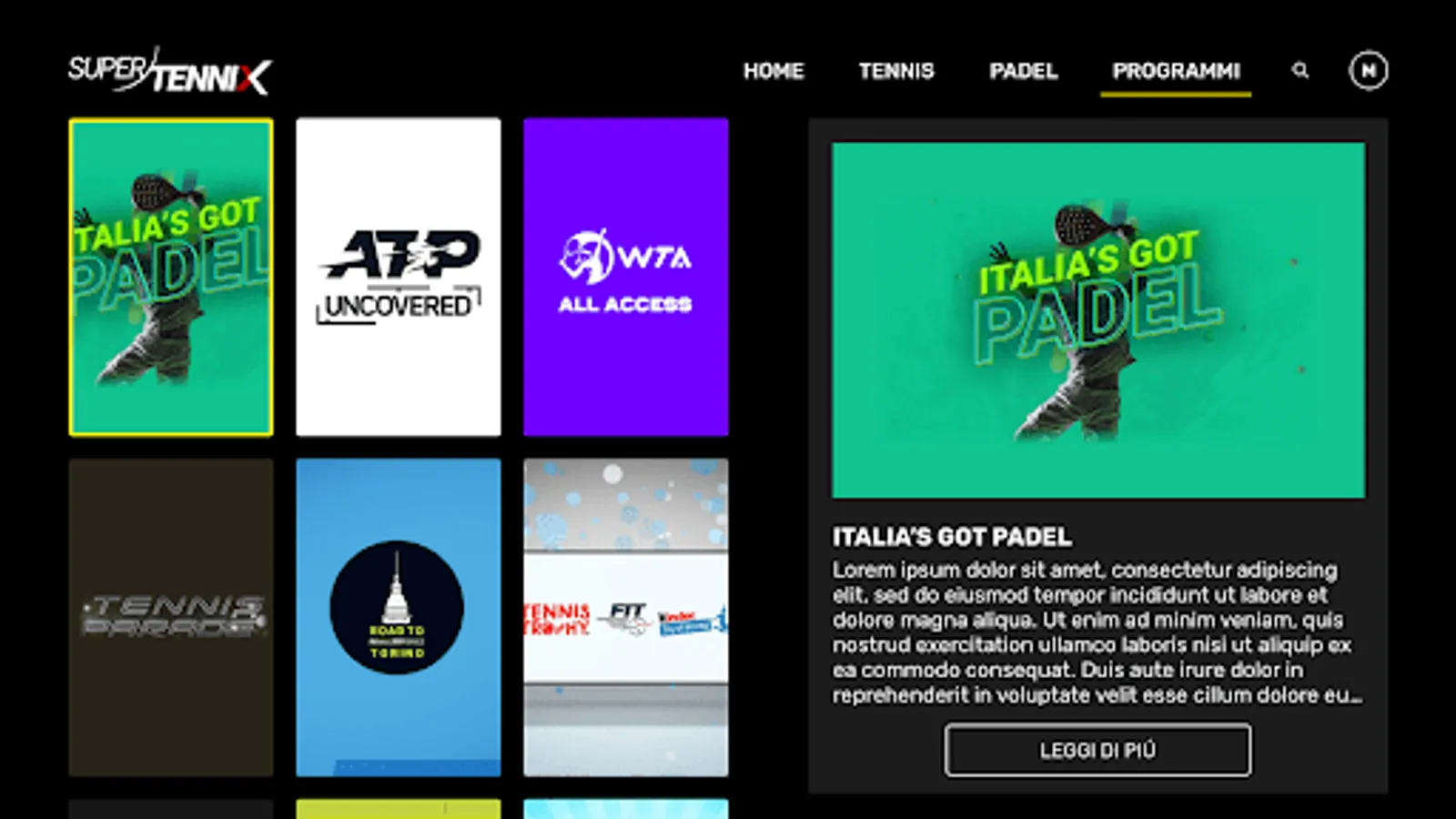 Thanks to a rich on demand section, it is also possible to stop time and enjoy the broadcasts aired on SuperTennis, including the matches of the ATP and WTA circuits.