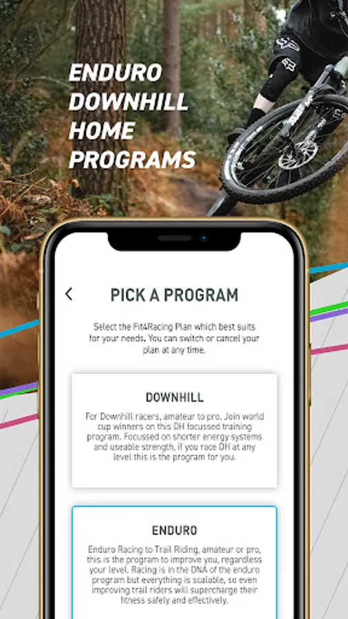 • Choose the program that is right for you - Enduro, Downhill, Home Workouts or Workout of the Week. All programs are scalable to your fitness and skill level. No generic programs here, target your specific goals with science based training programs.