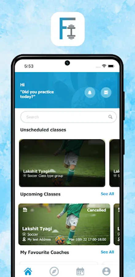 FITAYE Mobile App allows coaches to create a unique profile with custom configurations; including custom packages, pricing, location and decision on private or group classes. Furthermore coaches will upload a 30 second intro video for clients to get to know a little bit more about them!