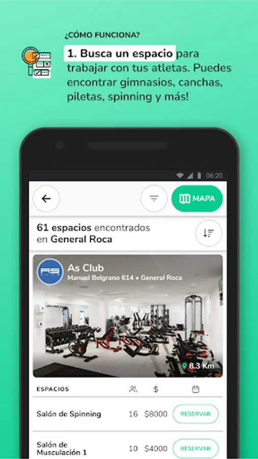 1. Find a sports space to work with your athletes. You can find gyms, courts, pools, indoor bike and more!