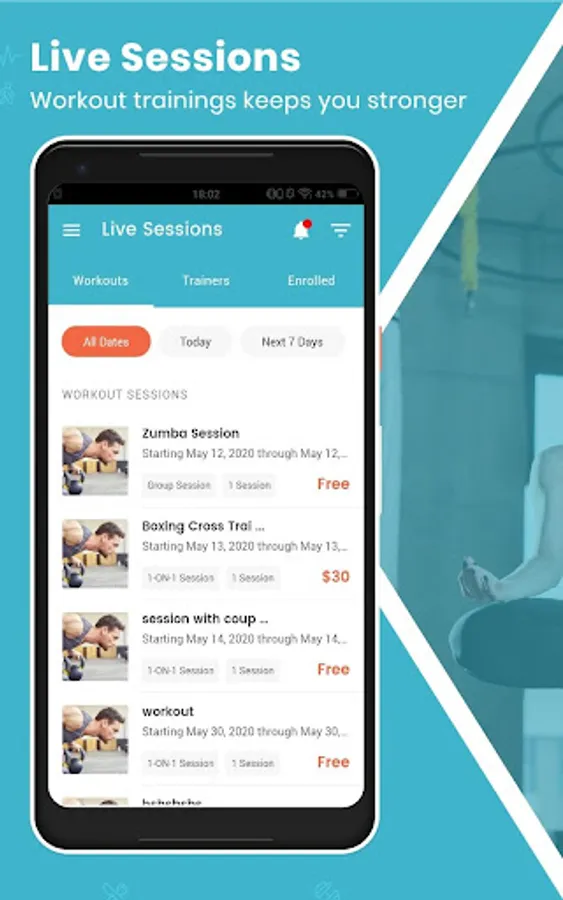 Enroll in live workout sessions with tech-savvy fitness trainers from across the world. One-on-one and group sessions are available for beginners, medium, advanced, and expert-level fitness aspirants.