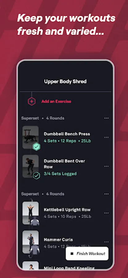 Fitbod keeps your gym sessions fresh and fun by mixing up your workouts with new exercises and maximizing the use of your available equipment.