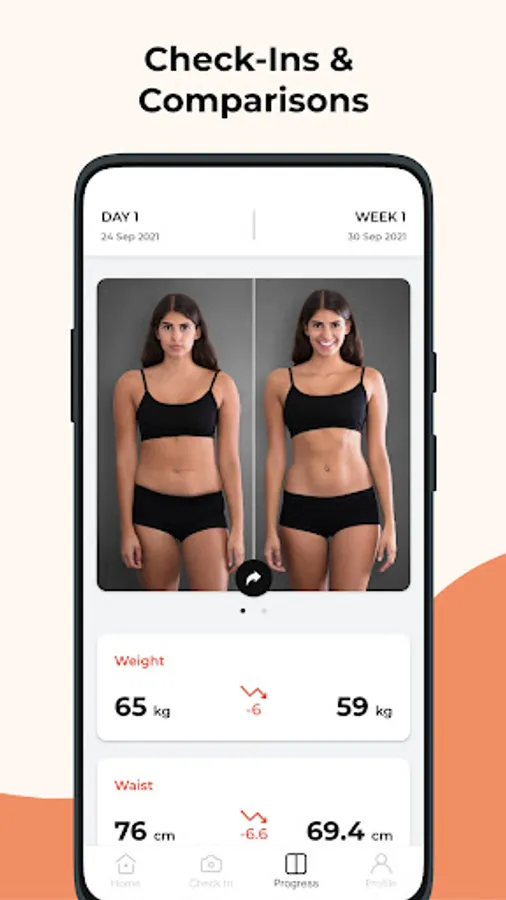 2. In-built camera - Click consistent progress pictures with guidelines, and track your progress with more accuracy