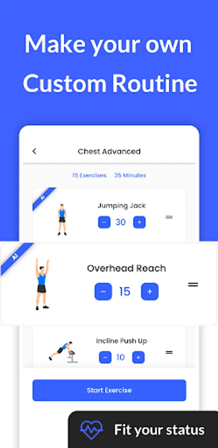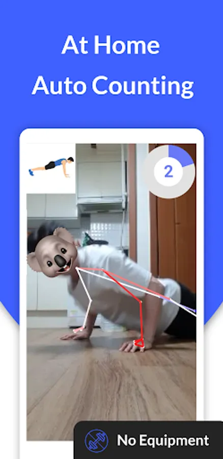 This app provides automatic counting of the number of exercises. It recognizes the user's body and automatically recognizes the exercise using only the front camera of the cell phone. When you complete all of the exercises, you automatically move on to the next exercise.