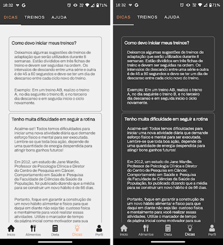 A tips tab is also presented, where several doubts are presented and explained, in addition to the suggestion of two months of adaptation training.