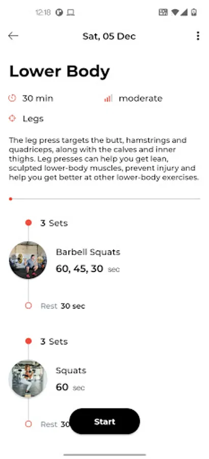 App also uses Google Fit to track energy burned and heart rate during a workout session, if an wearable is used.