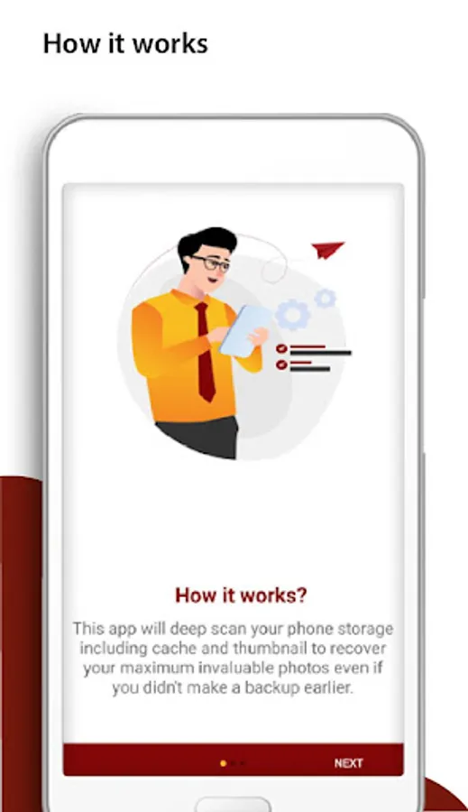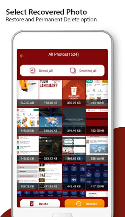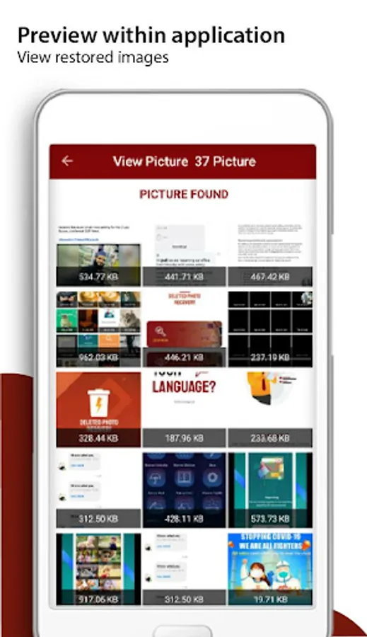The app will scan phone to get your photos and documents. You can restore your documents and photos whatever you want.