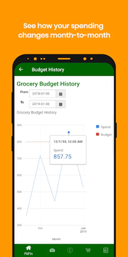 The Fitfin: Shopping and Grocery list scanner scans your receipts and automatically adds expenses to track against your budget. You can search receipts by date, store or keyword.
