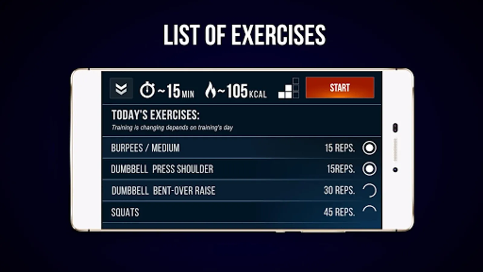 In our application, you will find professional training plans prepared by professional personal trainers in a different level of difficulty. You can start very slow and then after you will fill stronger, pick up more advanced plans so you will never get bored!