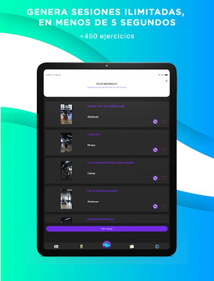 Platform to assist people who carry out physical activity inside and/or outside training centers, through routines defined by objectives, location and level, with explanatory videos, details of the training and with 24/7 availability.