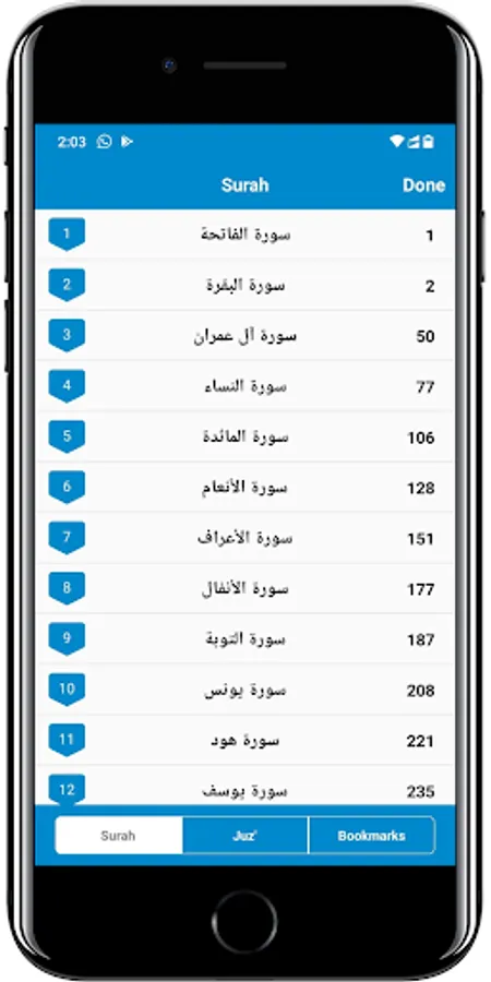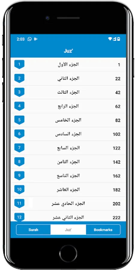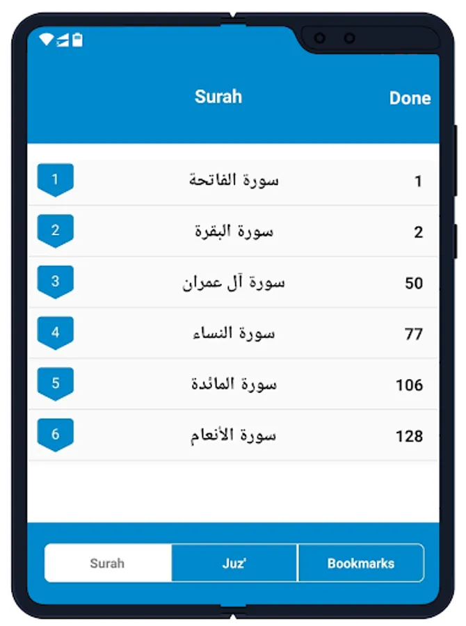 You can Open any Juz or Surah directly from index. Index list is set to have all 30 Juz' and 114 surahs respectively.
