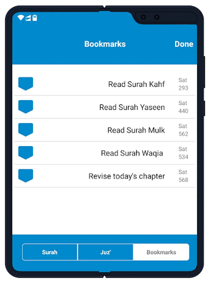 Bookmarks allow the reciter to easily return to where the previous reciting session ended and u can Save your favorite surah or page with unlimited bookmarks.
