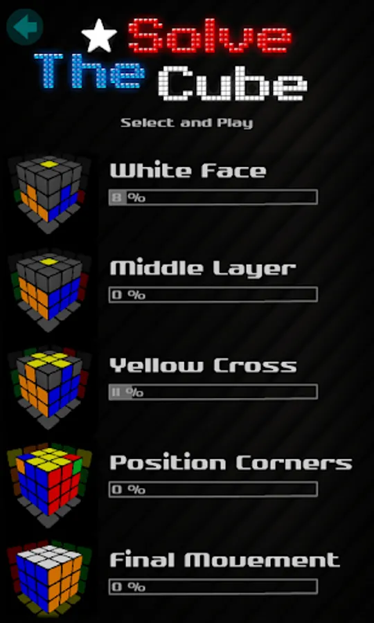 The movement’s sequences are explained step by step. In each step you can see which face you have to rotate and a title. Try to remember these titles and the rotation comes alone.