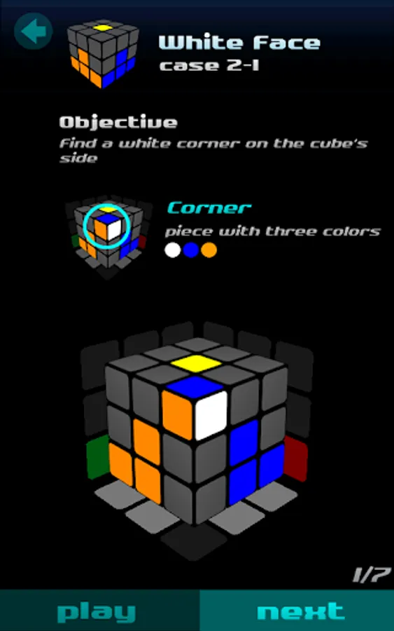 Corner: Pieces with 3 colors located in the cube’s corners. There are 8 in total.