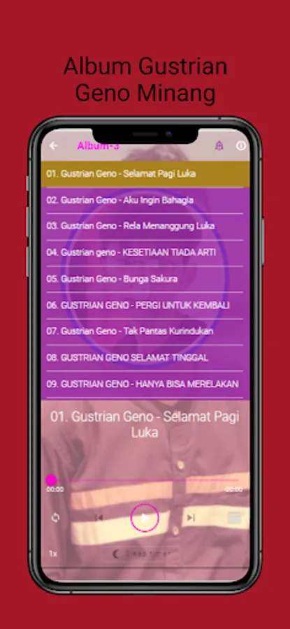 "Gustrian Geno Minang's album is a stunning masterpiece of musical art, presenting deep harmonies from classic Minang melodies to contemporary, innovative nuances. With captivating vocals and soulful arrangements, this application is a window into the beauty of Minang culture which is In Gustrian Geno Minang Album, you will find the perfect blend of tradition and modernity, creating an immersive experience that will capture your heart and awaken the spirit of the timeless Minang art."