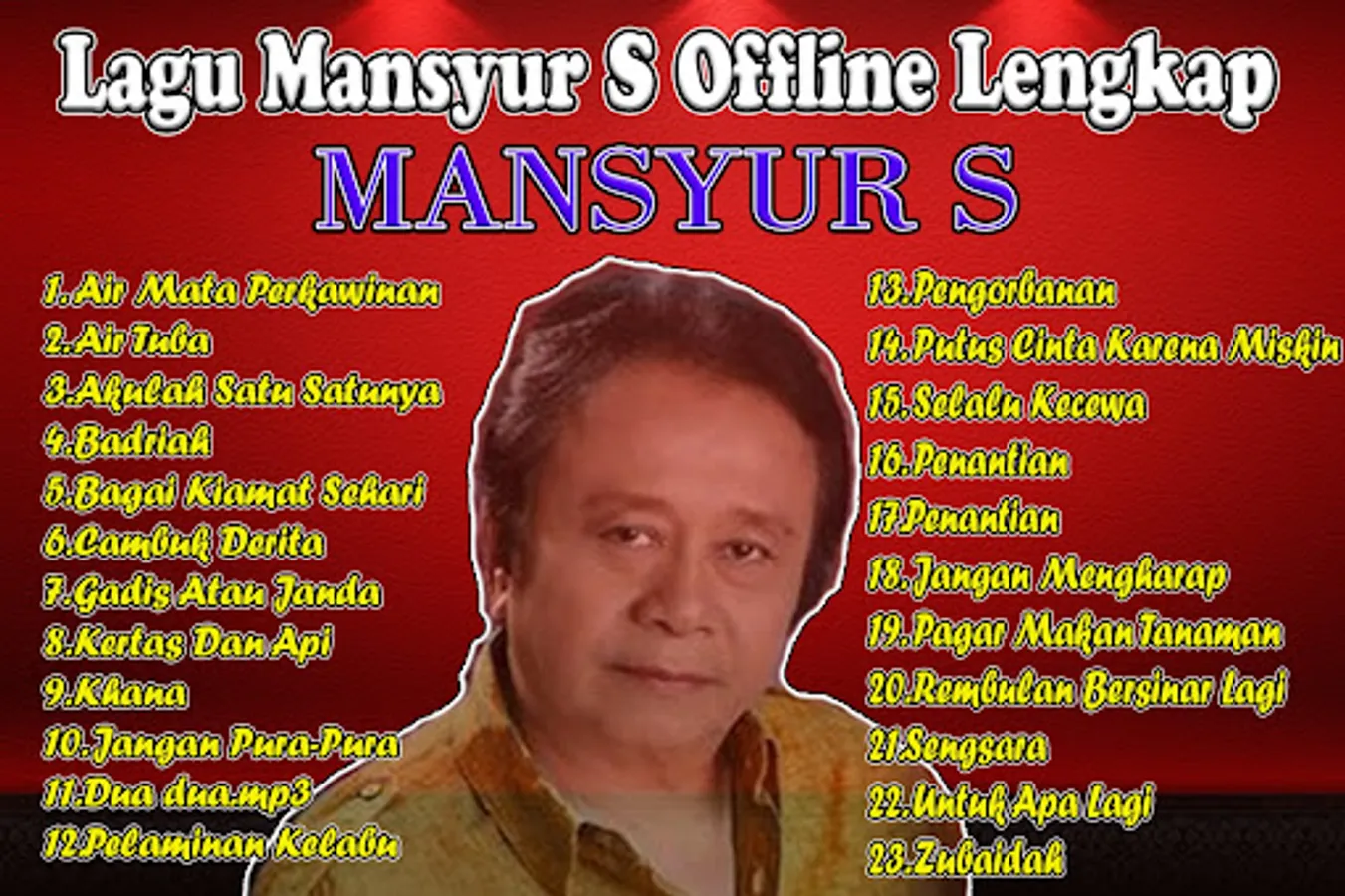 Apart from that, the Complete Offline Mansyur S Song music application also provides access to a collection of Complete Offline Mansyur S Songs which can be played online or downloaded for offline playback. Users can also search for songs easily through the search feature provided.