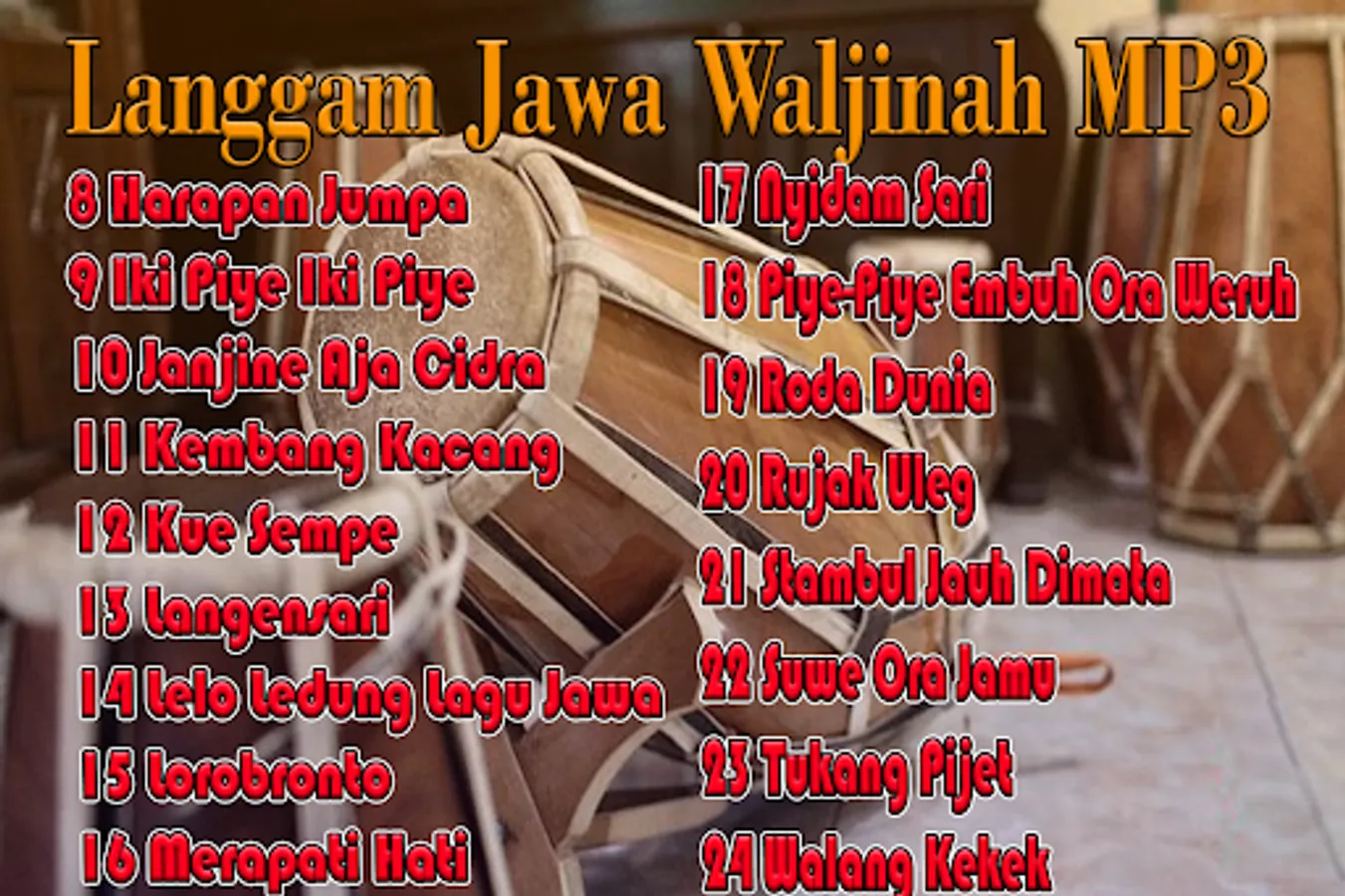 The following is a list of the Javanese Waljinah MP3 Langgam (Playlist) contained in this application, and we will always update it with the latest ones, suitable for listening casually as relaxation, calming hearts or bedtime music:
