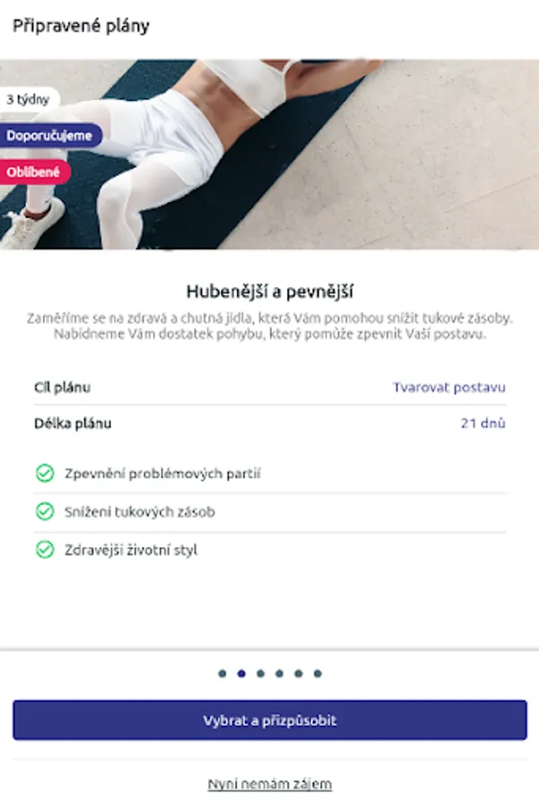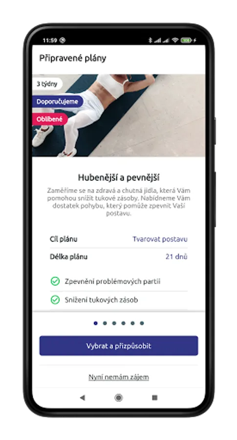 The application will prepare a suitable reduction, maintenance or volume diet for you. He will suggest suitable forms of movement for shaping the figure. It motivates you to achieve your goal.