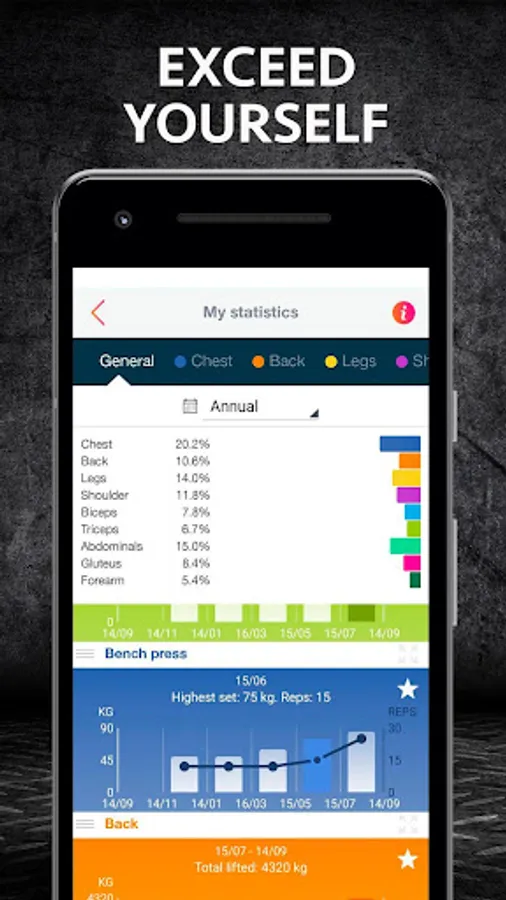 - Measure your transformation in each exercise and muscle group with clear and complete graphics, which will allow you to observe your evolution in the gym in the coming weeks, months or years.