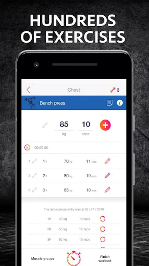 With FitKeeper Gym Fitness Tracker you can know the weights you used in each exercise last time, take control of rest between sets and see specific graphics of each exercise and muscle group to measure at a glance your evolution at gym.