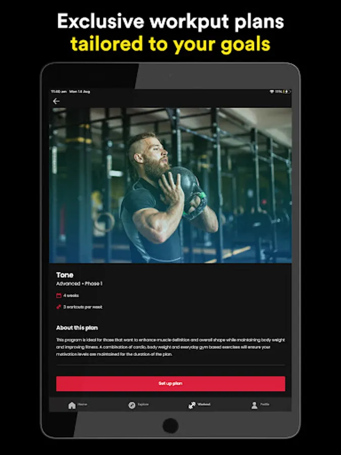 - Exclusive workout plans tailored to your goals, from beginner to advance