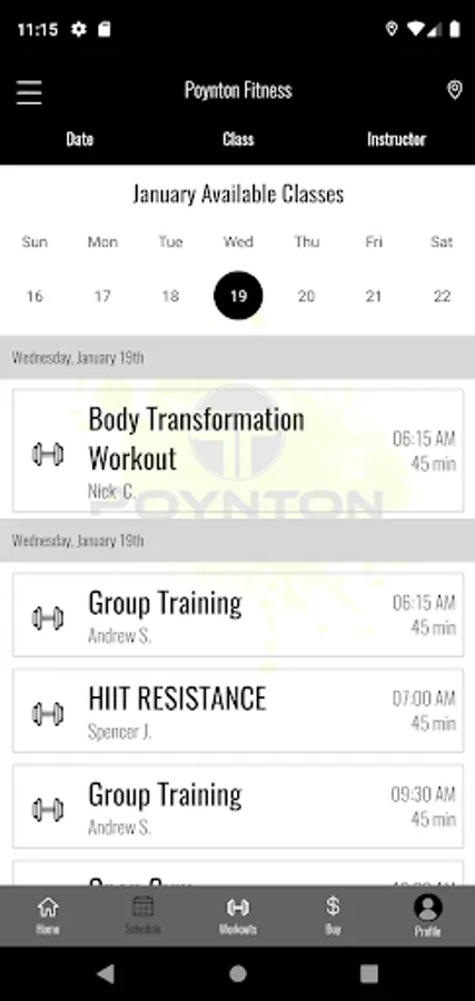 In the PF app you are able to Pay, Book and track your workouts right from your phone.