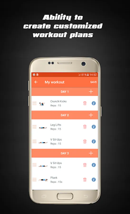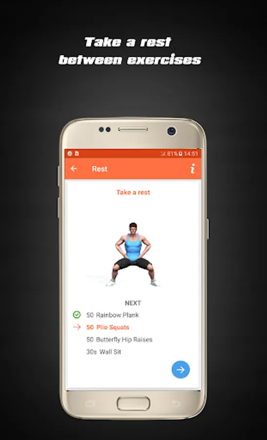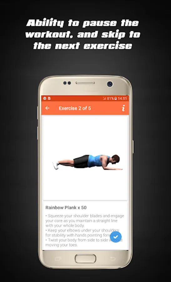 - Ability to pause the workout, and skip to the next or the previous exercise