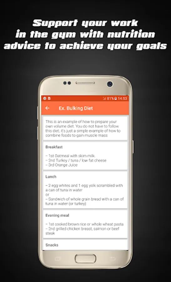 - This app will help you support your work in the gym with nutrition advice so that you know what, when and how to eat to achieve your goals.
