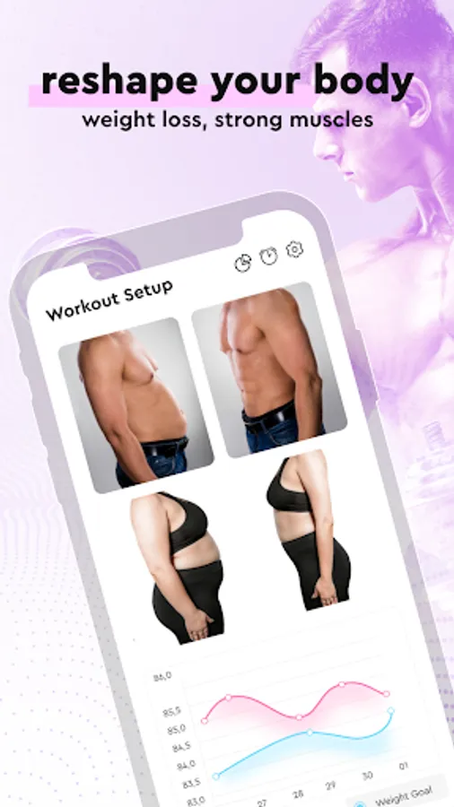 From now on we don't need a mirror to look our shape. The look on people's faces will tell us how fit we are. Remember no pain, no gain. But our app will make your workouts easier. You just need a strong will to accomplish.