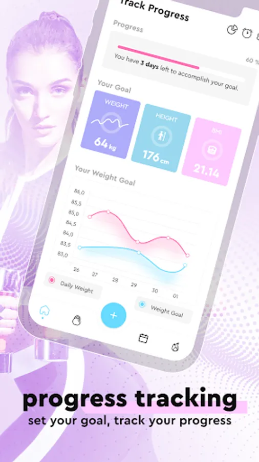 Your daily workout progress can be seen on one page. You can track tour progress and also you can track your weight and BMI. You can set your workout time and days. You will always stay on track with your fitness progress.