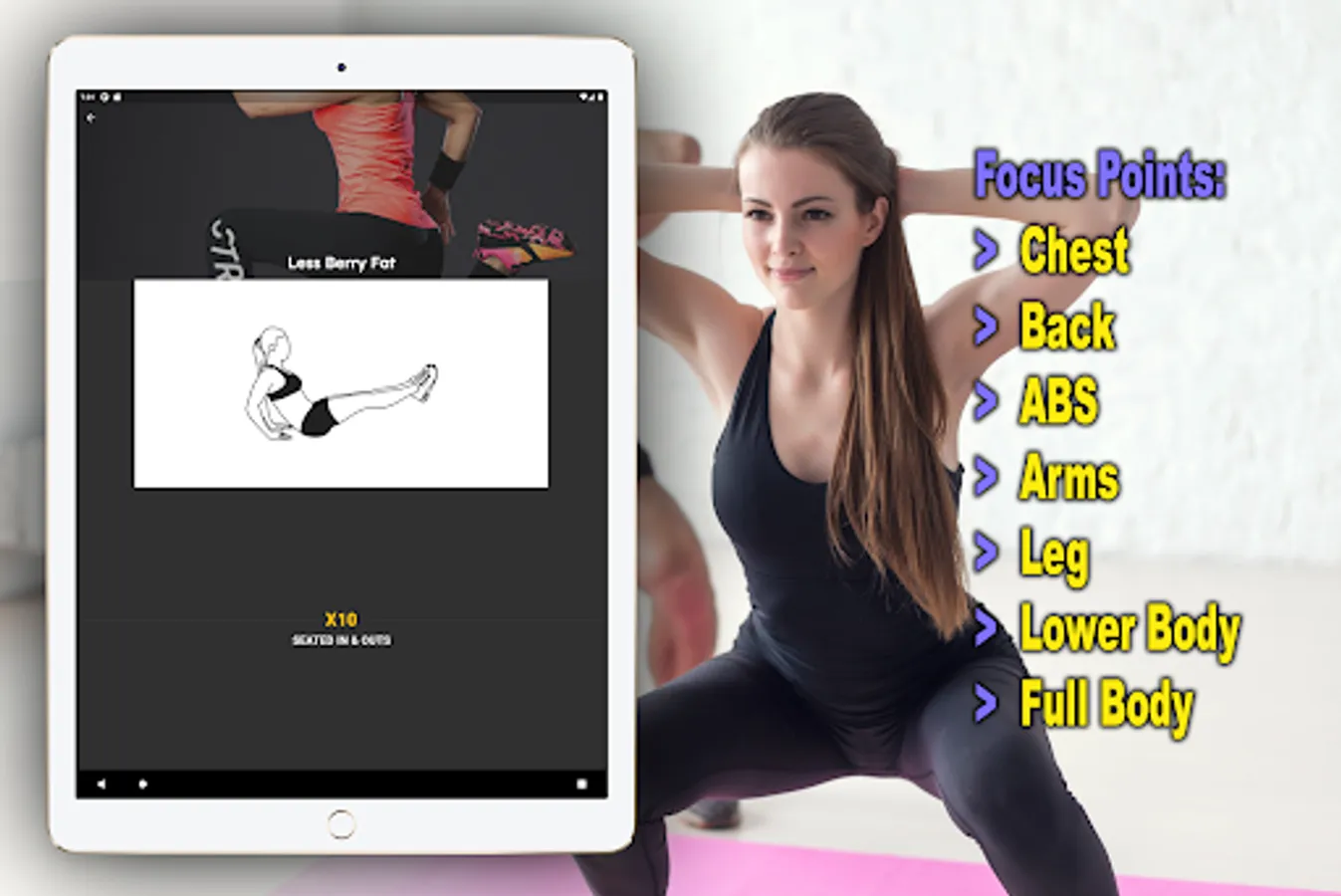 - Focus area: Chest, Back, ABS, Arms, Leg, Lower body and Full body