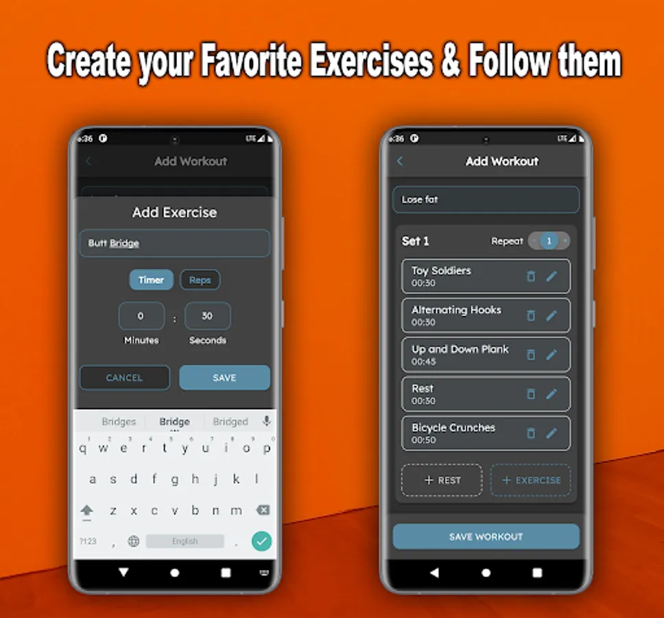 - Create your favorite exercises & follow them