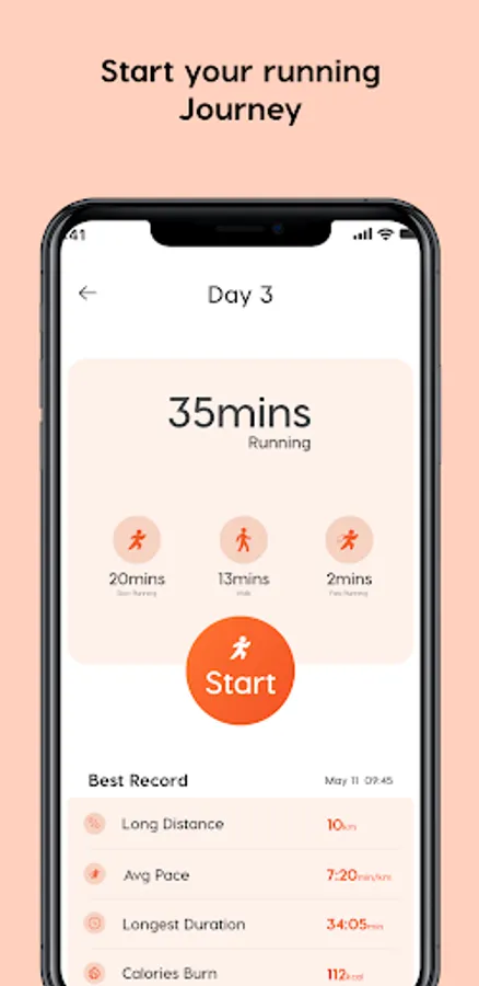 Install the fitness planner app on your android mobile; proceed to get Started, to use the Running feature Start Running for the shown time.