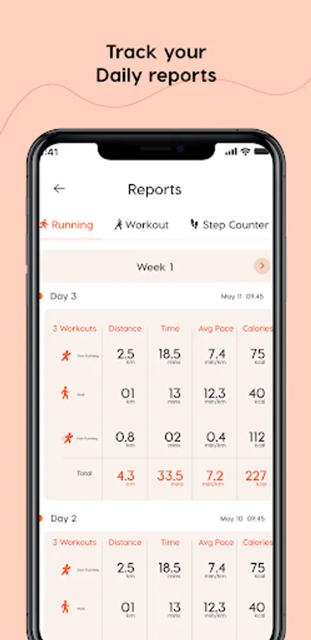 π¦Ά Step Counter: The fitness coach app monitors your steps during the walk/running and shows you a full report about your running/walking.