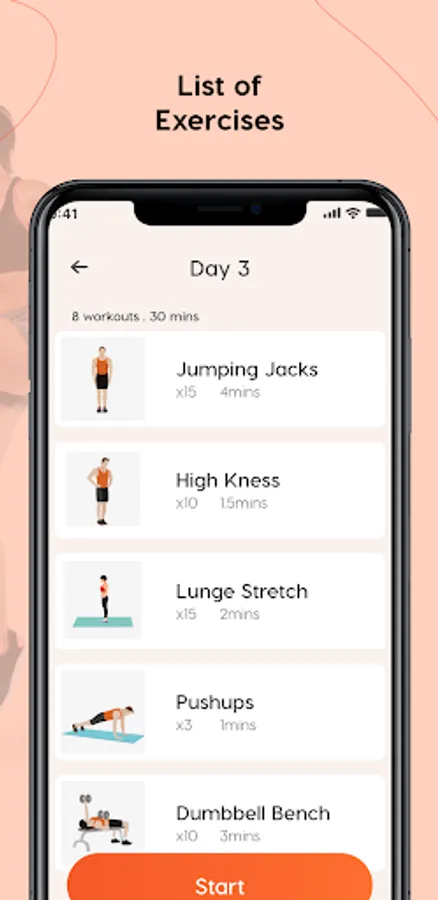 To start a 30 days workout plan click on the Workout and start from day 1 then follow the exercises one by one.